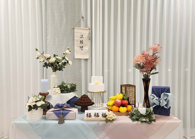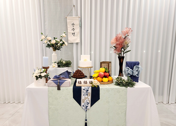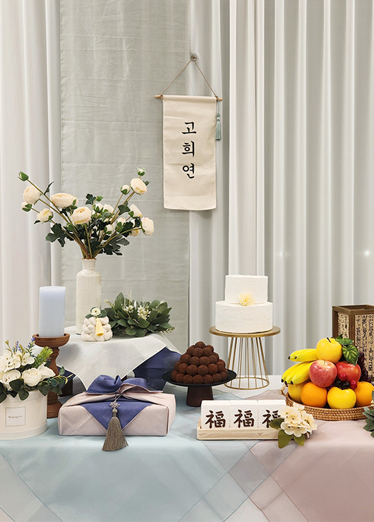 모형과일, 모형백설기, 모형 케이크, 화병 등 소품 제공